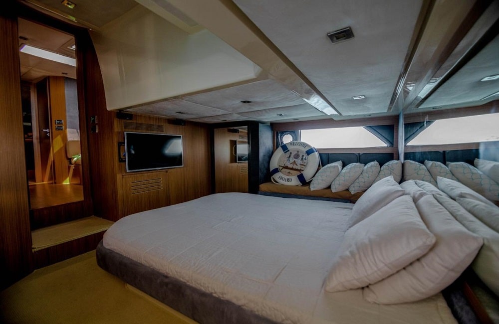 El Myriam Ester V es un yate privado para 14 pasajeros que combina potencia, amplitud y diseño contemporáneo. Cada espacio ha sido concebido para brindar comodidad absoluta, tanto en navegación como al fondear en playas paradisíacas.