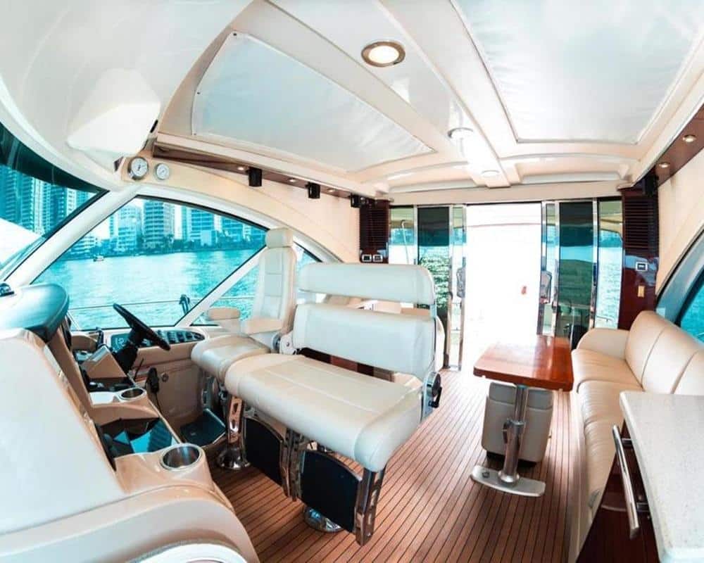 El Sea Ray Sundancer 62’ está impulsado por dos motores MAN de 1084 CC cada uno, una configuración que garantiza estabilidad, suavidad y seguridad incluso en travesías prolongadas. Esta potencia se traduce en maniobrabilidad precisa, respuesta eficiente y una navegación confortable, permitiendo disfrutar del recorrido sin sobresaltos y con total tranquilidad.